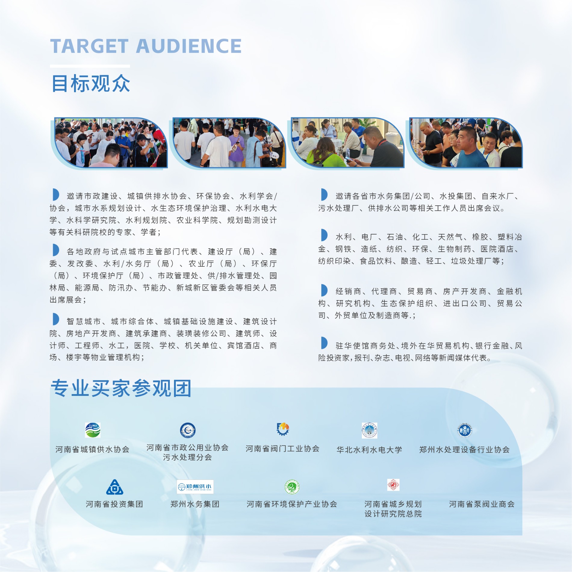 “2024中国郑州水科技与泵管阀博览会”将以展带会,以会促展,展、会结合的互动方式进行呈现,全面展示水科技、水资源、水环境、水生态等领域的新产品技术及装备,汇聚水行业有志之士,开启多主体、多层次、多形式交流合作的新格局,帮助参展企业现场高效地维护客户关系,拓展业务合作,推广新品和服务,提升品牌形象,呈现一场互动性强、质量佳的水行业盛会。