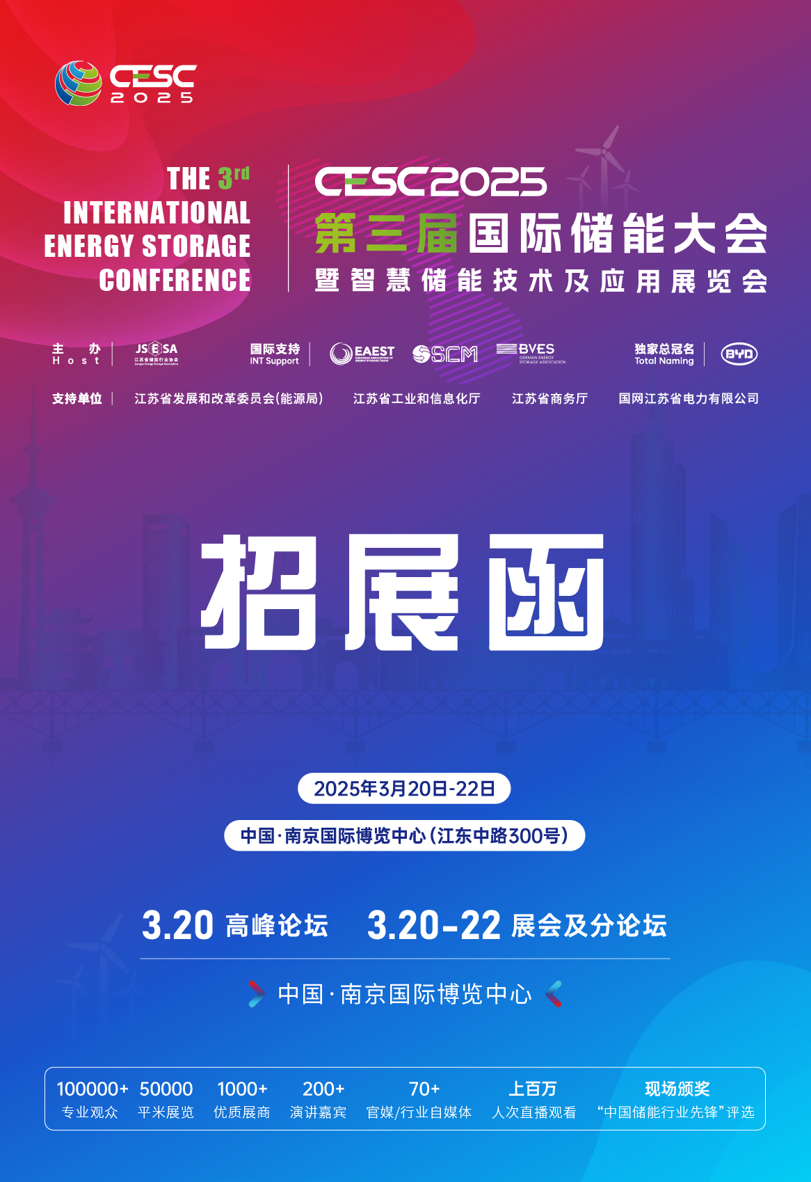 CESC2025第三届国际储能大会暨智慧储能技术及应用展览会(以下简称“CESC2025”)将于3月20日-22日在南京国际博览中心盛大召开